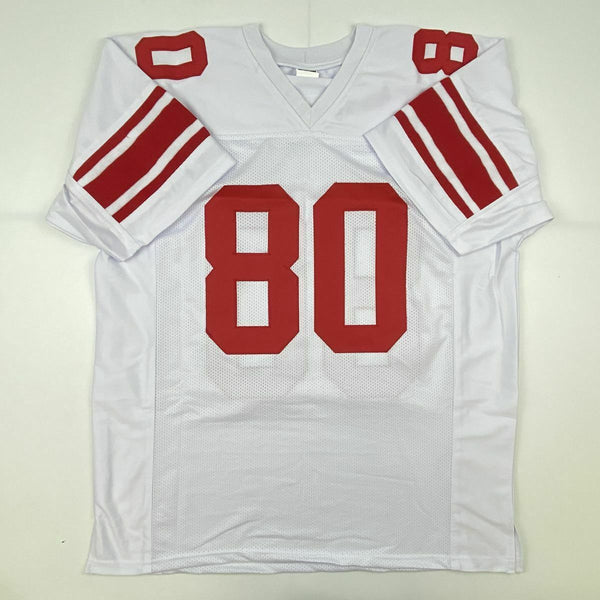 Autographed/Signed JEREMY SHOCKEY New York White Football Jersey JSA COA Auto This is a custom jersey and was not manufactured by or in any manner associated with any professional sports league or manufacturer. This custom jersey carries no professional sports league designation. The item is intended to be an autographed collectible. Reference of team in the title is to allow the purchaser a point of association. The custom jersey displays the name, number and authenticated signature of the player. This item in no way is affiliated with or connected to any professional sports organization. The autograph, as always is guaranteed to be authentic and has been certified as authentic by a third-party, trusted authenticator. Size is XL unless otherwise noted.