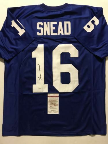 Autographed/Signed NORMAN NORM SNEAD New York Blue Football Jersey JSA COA Auto This is a custom jersey and was not manufactured by or in any manner associated with any professional sports league or manufacturer. This custom jersey carries no professional sports league designation. The item is intended to be an autographed collectible. Reference of team in the title is to allow the purchaser a point of association. The custom jersey displays the name, number and authenticated signature of the player. This item in no way is affiliated with or connected to any professional sports organization. The autograph, as always is guaranteed to be authentic and has been certified as authentic by a third-party, trusted authenticator. Size is XL unless otherwise noted.