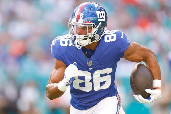 Custom on-field style jersey. Everything is sewn on, size XL. Hand-signed in black felt-tip pen by Darius Slayton. The lot / autograph(s) includes an official James Spence Authentication (JSA) hologram and matching COA for authenticity purposes.Authentication: JSA COA