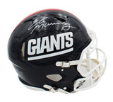 A New York Giants Speed Authentic Throwback 81-99 Blue NFL Helmet hand signed by Eli Manning. The item and signature are in excellent condition. Eli is a former quarterback who played in the NFL for 16 seasons with the New York Giants. After playing college football at the University of Mississippi, he was selected as the first overall pick in the 2004 NFL Draft by the San Diego Chargers and traded to the Giants during the draft. AUTHENTICATION: The item is tagged with Fanatics Authentic Serial Numbered and Databased Hologram