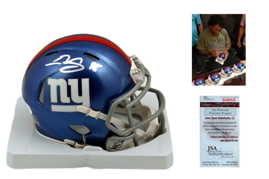 This signed item is brand new in box. This item will make a great gift or a great addition to any collection at an AFFORDABLE PRICE! ATHLETE: Evan Engram ITEM: New York Giants Speed Mini Helmet AUTHENTICATION: This item comes with a James Spence Authentication (JSA) Witnessed Certificate of Authenticity and serial #'ed hologram affixed to the item. To ensure authenticity, the hologram can be reviewed online. This process helps to ensure that the product purchased is authentic and eliminates any possibility of duplication or fraud.