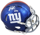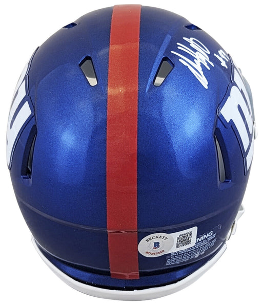 This Autographed Speed Mini Helmet has been Personally Signed by Jalin Hyatt of the New York Giants. This item is 100% Authentic to include a hologram by Beckett Authentication Services. This item will come with the new Beckett Authentication hologram that has a scannable QR code rather than the traditional COA. If you would like to have a COA, you are welcome to reach out to Beckett for a printed certification once you receive your item. This is a BAS Witnessed Protection Program item which means a Beckett Authentication Service representative was present when this item was being signed. We conducted an autograph signing with Jalin Hyatt where multiples of the same item were signed. While the photographs are representative of this item, the size, placement and strength of the signature may vary. Each item is hand signed, therefore, each autograph is unique. This item can be verified through BAS Witnessed.