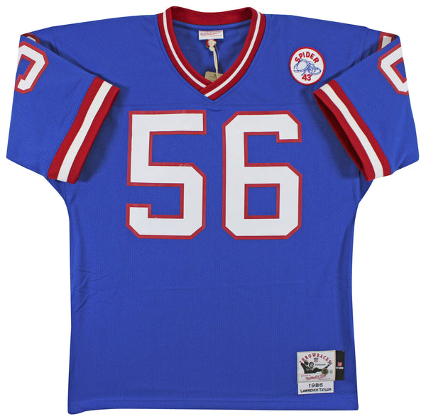 This Autographed 1986 Blue Mitchell & Ness Throwback Authentic Jersey with the inscription of "HOF 99, 86 DPOY" has been Personally Signed by Lawrence Taylor of the New York Giants. This item is 100% Authentic to include a hologram by Beckett Authentication Services. This item will come with an affixed Beckett Authentication Services (BAS) authentication sticker, which includes a scannable QR code to verify authenticity. Please note that Beckett no longer provides serial-numbered COA cards, and the attached BAS sticker will serve as the complete authentication for this item. We have multiples of this same item. While the photographs are representative of this item, the size, placement and strength of the signature may vary. Each item is hand signed, therefore, each autograph is unique. This is a X-Large sized Jersey.