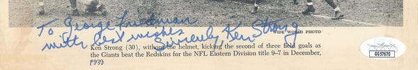Ken strong autographed/inscribed 9x6.5 b/w photo new york giants. this photo is authenticated by jsa and includes their tamper-proof sticker and certificate of authenticity.