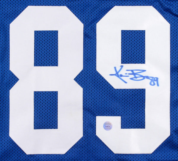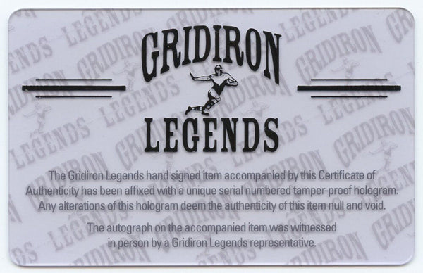 Custom on-field style jersey. Everything is sewn on, size XL. Hand-signed in blue paint pen by Kevin Boss. The Gridiron Legends hand signed item accompanied by this Certificate of Authenticity has been affixed with a unique serial numbered tamper-proof hologram. Any alterations of this hologram deem the authenticity of this item null and void. The autograph on this item was witnessed in person by a Gridiron Legends representative.Authentication: Gridiron Legends COA