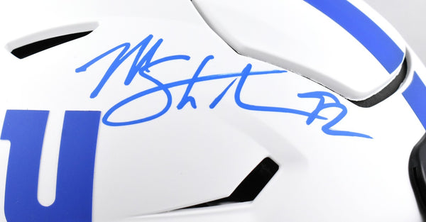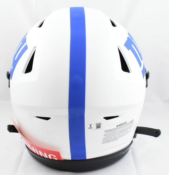 This is a Michael Strahan of the New York Giants Autographed Riddell football full size Lunar Speed Flex Authentic helmet. This item has a Beckett Witnessed Authentication, which comes with a numbered sticker hologram and a QR code for verification. You can view this item on the Beckett Authentication website and it shows when and where the item was signed. It was signed either at a public autograph appearance or a private signing. This is a stock photo of the item. Although you may not receive this exact item, the item you receive is virtually identical, brand new, and in great shape. *Autograph location may vary* This is a Michael Strahan of the New York Giants Autographed Riddell football full size Lunar Speed Flex Authentic helmet. This item has a Beckett Witnessed Authentication, which comes with a numbered sticker hologram and a QR code for verification. You can view this item on the Beckett Authentication website and it shows when and where the item was signed. It was signed either at a public autograph appearance or a private signing. This is a stock photo of the item. Although you may not receive this exact item, the item you receive is virtually identical, brand new, and in great shape. *Autograph location may vary*