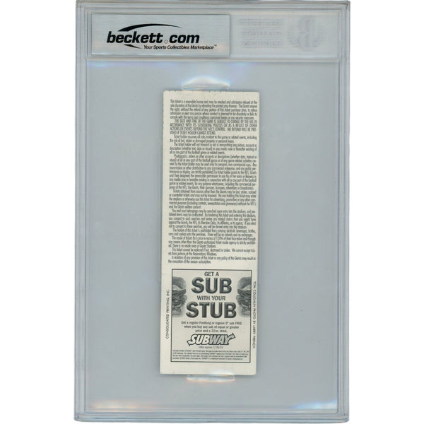 The number in the listing title is just an inventory sku for our records and is not the authentication number. The item pictured is the exact item you will receive, please see photos for condition. This is a New York Giants 11/02/2008 vs. Cowboys Slabbed Ticket Stub that was personally autographed by Michael Strahan. Includes a certificate of authenticity from Beckett Authentication Services (BAS) and Denver Autographs.FREE SHIPPING within the USA on orders over $10!