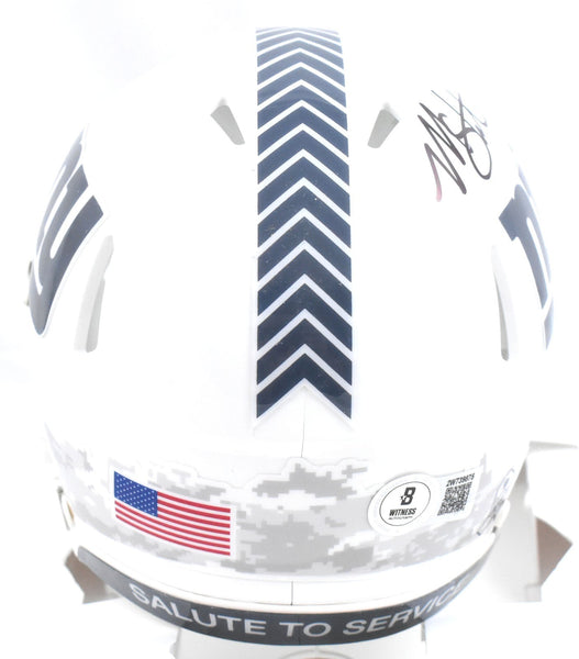 This is a hand autograph of Michael Strahan of the New York Giants on a Riddell Football Salute to Service 2024 Speed Mini Helmet. This item has a Beckett Witnessed Authentication, which comes with a numbered hologram and a QR code for verification. You can view this item on the Beckett Authentication website and it shows when and where the item was signed. It was signed either at a public autograph appearance or a private signing. This is a stock photo of the item. Although you may not receive this exact item, the item you receive is virtually identical and brand new in great shape. This is a hand autograph of Michael Strahan of the New York Giants on a Riddell Football Salute to Service 2024 Speed Mini Helmet. This item has a Beckett Witnessed Authentication, which comes with a numbered hologram and a QR code for verification. You can view this item on the Beckett Authentication website and it shows when and where the item was signed. It was signed either at a public autograph appearance or a private signing. This is a stock photo of the item. Although you may not receive this exact item, the item you receive is virtually identical and brand new in great shape.