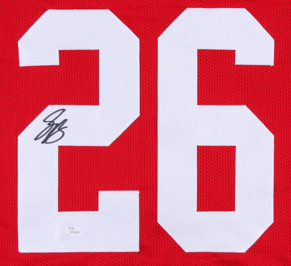 Custom on-field style jersey. Everything is sewn on, size XL. Hand-signed in black felt-tip pen by Saquon Barkley. The autograph(s) includes an official James Spence Authentication (JSA) "Signature Debut" hologram. "Signature Debut" is the autographed memorabilia equivalent to a rookie card. The JSA definition of a "Signature Debut" is as follows: "Any item that is autographed and received by JSA prior to the last game of the signer's official rookie season.Authentication: JSA Signature Debut Hologram Shop our ebay store / Friendly Confines Collectibles for thousands of different autographed jerseys