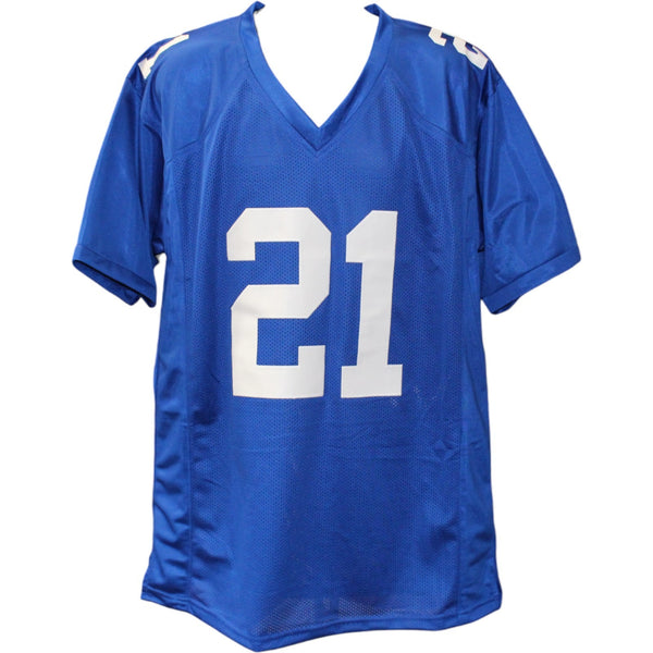 The number in the listing title is just an inventory sku for our records and is not the authentication number. The item pictured is a stock photo unless otherwise noted. This is a Pro Style Blue Size XL Jersey with sewn on numbers that was personally autographed by Tiki Barber. Includes a certificate of authenticity from Beckett Authentication Services (BAS) and Denver Autographs. FREE SHIPPING within the USA on orders over $10!