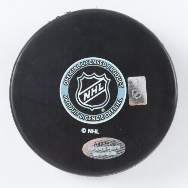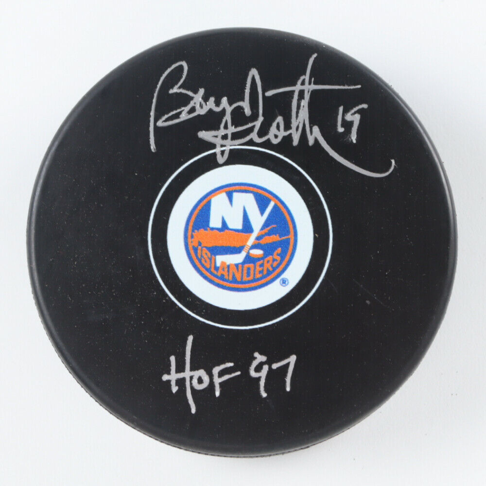 New York Islanders logo hockey puck. Hand-signed and inscribed by Denis Potvin (HOF).The lot / autograph(s) includes an official Schwartz Sports Hologram and matching COA for authenticity purposes.Authentication: Schwartz Sports COA