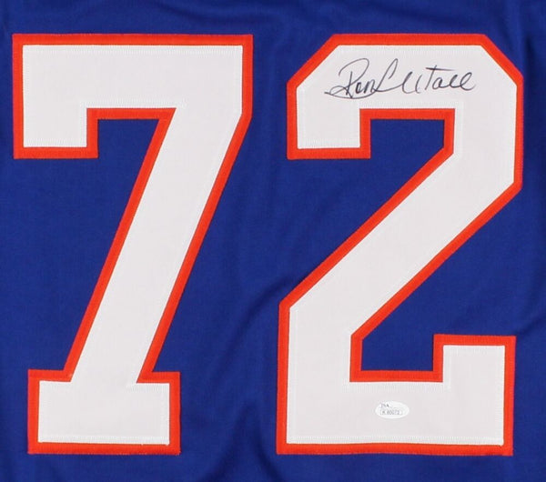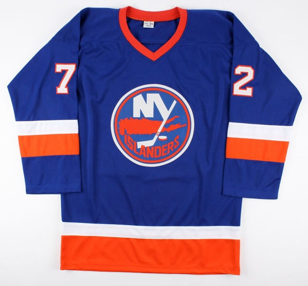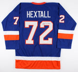 Custom on-ice style jersey. Everything sewn on, size XL. Hand-signed in black felt-tip pen by Ron Hextall (Flyers, Nordiques, Islanders). The autograph includes an official James Spence Authentication (JSA) hologram and matching COA for authenticity purposes.Authentication: JSA COA