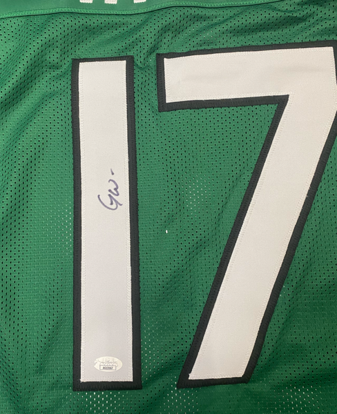 Is a custom jersey autographed by Garrett Wilson. This jersey comes complete with the JSA hologram. This signature was witnessed by a representative from JSA Authentication and includes their hologram. Made in the USA Personally Autographed by Garrett Wilson Includes tamper-evident hologram.