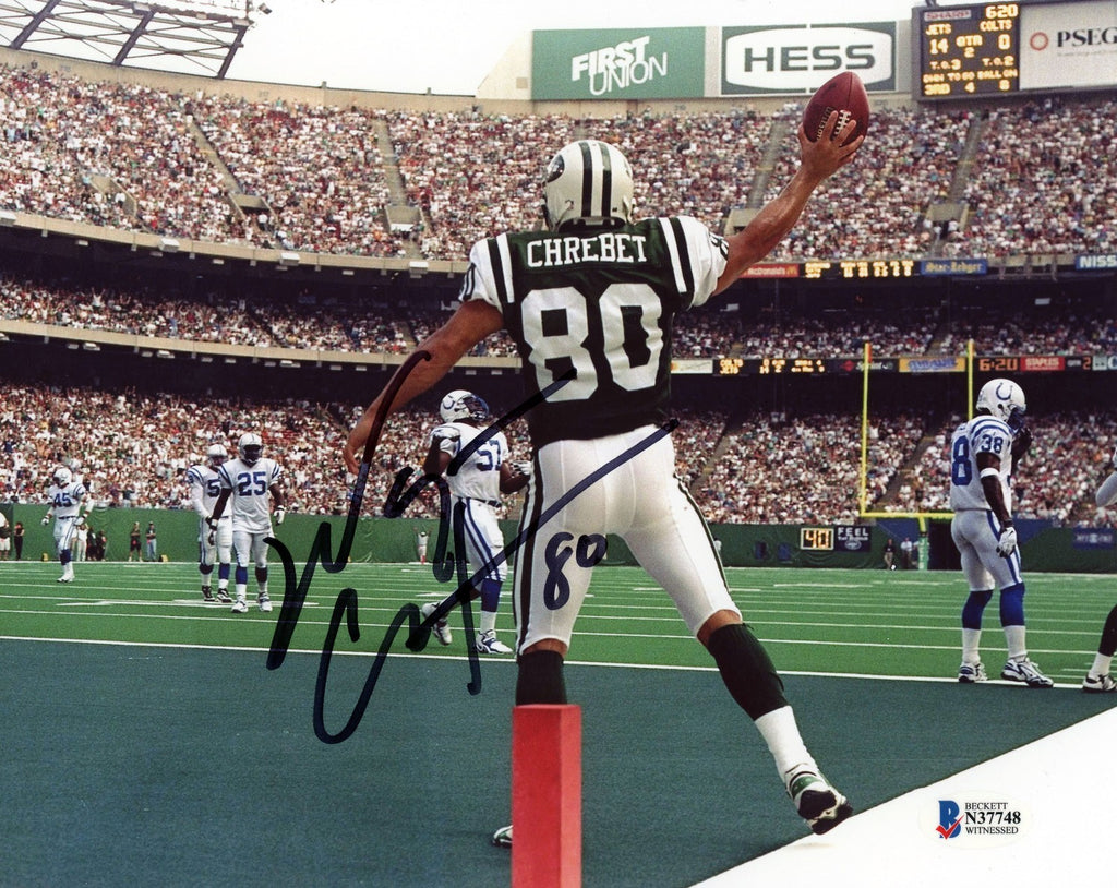 Wayne Chrebet, former star wide receiver for the New York Jets, has hand signed this 8x10 photo at a private signing. This item comes with a certificate of authenticity (COA) from Beckett Authentication Services and was signed in the presence of one of their representatives. You will receive a serial-numbered COA along with a matching serial-numbered sticker on the photo. The authenticity can be verified online by entering the serial number.Item pictured may not be the exact item you will receive. It will be similar quality, and we guarantee your satisfaction.