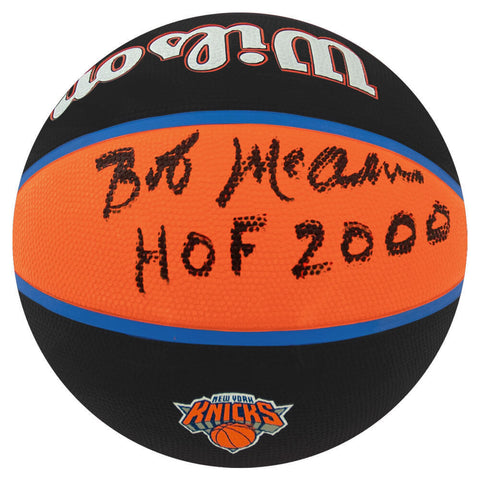 Bob McAdoo Signed Knicks Logo Wilson NBA Basketball w/HOF 2000 - (SCHWARTZ COA)