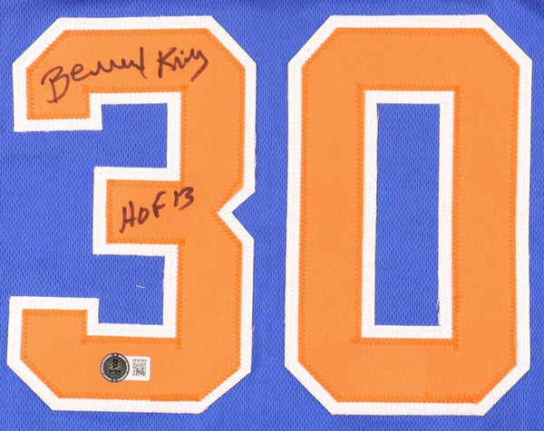 Custom jersey with everything sewn on, size XL. Has been hand-signed and inscribed by Bernard King (HOF).The autograph includes an official Beckett Authentication Services serially numbered hologram and QR Code card for authenticity purposes. The signing of this item was witnessed by Beckett.Authentication: Beckett QR Code card
