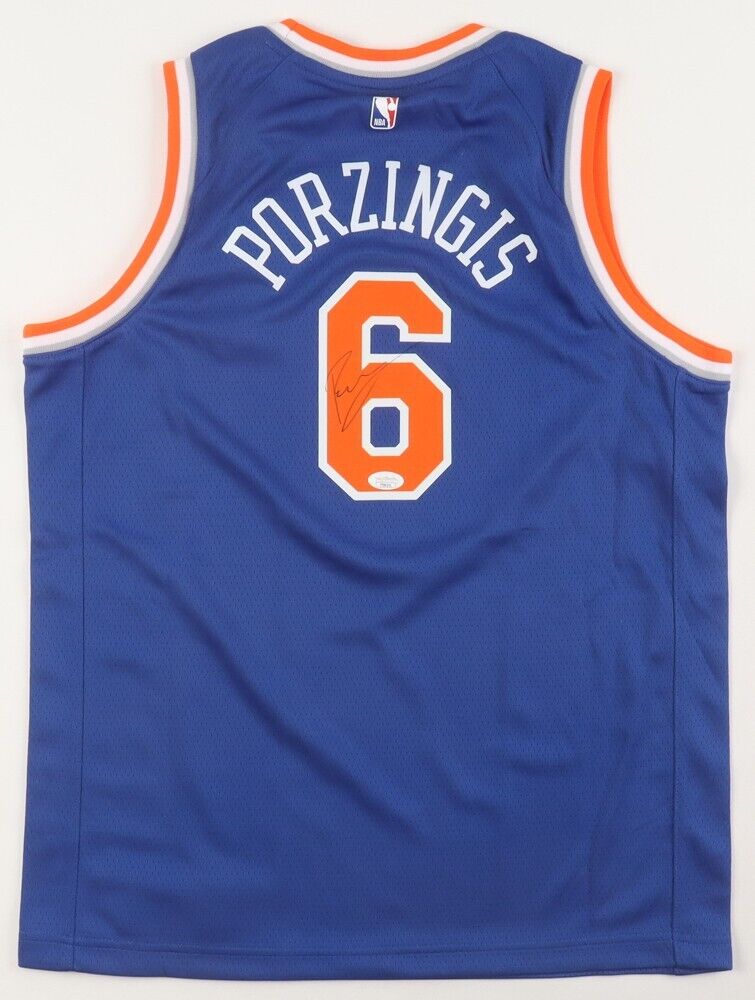 Nike youth jersey with everything pressed on, size Youth Large. Hand-signed by Kristaps Porzingis (New York Knicks).The autograph(s) includes an official James Spence Authentication (JSA) hologram and matching COA for authenticity purposes.Authentication: JSA COA