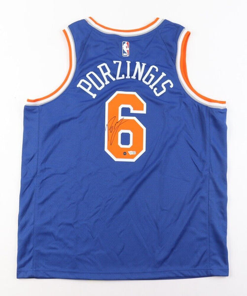 Nike jersey. Everything is pressed on, size 52. Hand-signed by Kristaps Porzingis.The lot / autograph(s) includes an official Fanatics hologram for authenticity purposes.Authentication: Fanatics HologramThe autograph(s) includes an official Steiner hologram for authenticity purposes.Authentication: Steiner Hologram