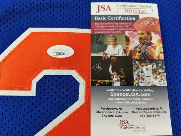 Custom on-court style jersey. Everything sewn on, size XL. Hand-signed in black felt-tip pen by Larry Johnson. The autograph includes an official James Spence Authentication (JSA) hologram and matching COA for authenticity purposes. The signing of this item was witnessed by JSA. Authentication: JSA COA