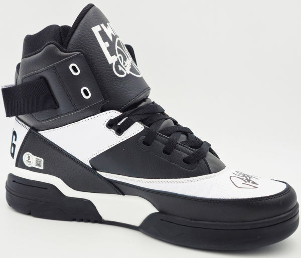 This is a Black & White Ewing Athletics 33 HI OG Left Shoe that has been hand signed by Patrick Ewing. This item has been witnessed and certified authentic by Beckett Authentication (BAS) and comes with their tamper-proof witness hologram.