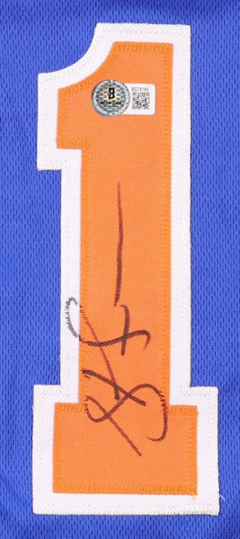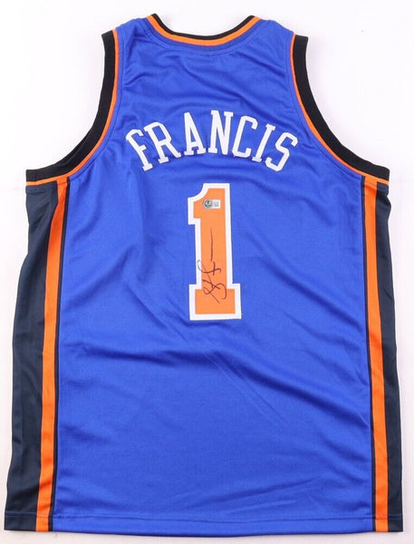Custom on-court style jersey. Everything sewn on, size XL. Hand-signed by Steve Francis.The lot / autograph(s) includes an official Beckett Authentication Services serially numbered hologram and QR Code card for authenticity purposes. The signing of this item was witnessed by Beckett.Authentication: Beckett QR Code card