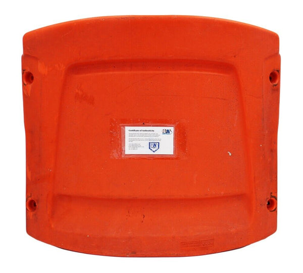 A New York Mets Shea Stadium Orange #4 Seat Back hand signed by Lenny Dykstra. The signature is in excellent condion. The seat back is in used condition. In addition to signing his name, Lenny also inscribe "Nails" "1986 World Series Champs" on the item. Lenny is a former professional baseball player. He played for the New York Mets and the Philadelphia Phillies. He is a 3x All Star, a World Series Champion and a Silver Slugger Award recipient. AUTHENTICATION: The item is accompanied by MAB Celebrity Services Hologram.