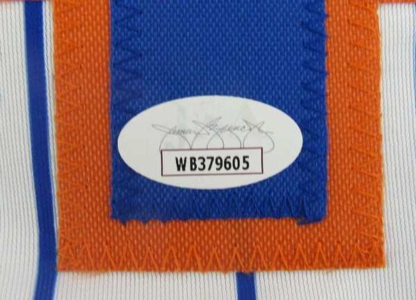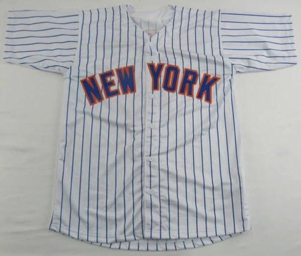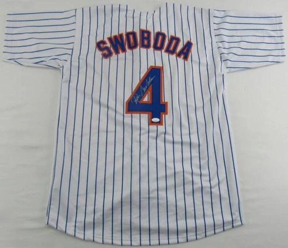 This autographed custom on-field style adult XL jersey has been personally hand-signed by Ron Swoboda of the New York Mets. In Game 4 of the 1969 World Series, Swoboda, not known for his fielding, made a spectacular catch of a ball hit by Brooks Robinson in the ninth inning to stop an Orioles rally. The Mets won the game 2-1 in ten innings, and subsequently, the World Series. For the World Series, Swoboda batted .400. His only RBI was the game winner of the fifth and final game.The autograph includes an official James Spence Authentication (JSA) hologram and QR Code card for authenticity purposes. The signing of this item was witnessed by JSA.Authentication: JSA QR Code cardCustom on-field style jerseys are a more affordable option for autograph seekers. These jerseys do not have any brand name or tags and are made in the Philippines. They feature stitched on names and numbers and are made to look very similar to the on-field jerseys that the players wear. These custom jerseys are very commonly used in the memorabilia industry.