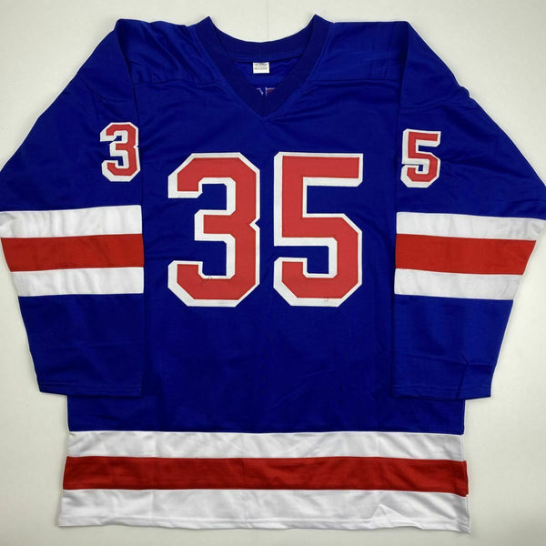 Autographed/Signed MIKE RICHTER New York Blue Hockey Jersey PSA/DNA COA Auto This is a custom jersey and was not manufactured by or in any manner associated with any professional sports league or manufacturer. This custom jersey carries no professional sports league designation. The item is intended to be an autographed collectible. Reference of team in the title is to allow the purchaser a point of association. The custom jersey displays the name, number and authenticated signature of the player. This item in no way is affiliated with or connected to any professional sports organization. The autograph, as always is guaranteed to be authentic and has been certified as authentic by a third-party, trusted authenticator. Size is XL unless otherwise noted.