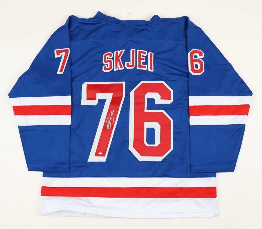 Custom on-ice style jersey. Everything is sewn on, size XL. Has been hand-signed by Brady Skjei.The lot / autograph(s) includes an official OK Authentics hologram for authenticity purposes. The signing of this item was witnessed by OK Authentics.Authentication: OK Authentics Hologram