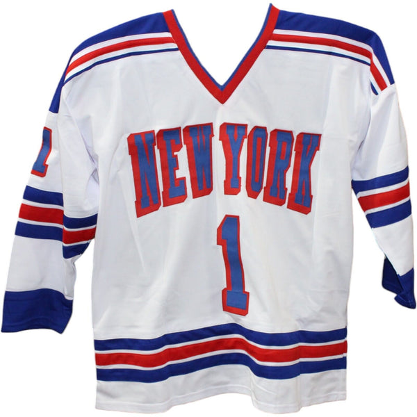 Ed Giacomin Autographed/Signed Pro Style White Jersey HOF 43535 JSA The number in the listing title is just an inventory sku for our records and is not the authentication number. The item pictured is a stock photo unless otherwise noted. This is a Pro Style White Jersey that was personally autographed by Ed Giacomin with "HOF" inscription. Includes a certificate of authenticity from James Spence Authentication (JSA) and Denver Autographs.
