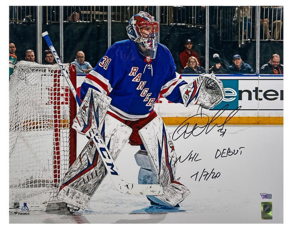 This 16" x 20" NHL Debut photograph has been personally hand-signed by Igor Shesterkin with the added inscription "NHL Debut 1/7/20." It is officially licensed by the National Hockey League and comes with an individually numbered, tamper-evident hologram from Fanatics Authentic. To ensure authenticity, the hologram can be reviewed online. This process helps to ensure that the product purchased is authentic and eliminates any possibility of duplication or fraud.Made in the USAPersonally Autographed by Igor ShesterkinFanatics Authentic Presented by Mounted MemoriesIncludes tamper-evident hologram to ensure authenticityOfficially licensed This product is guaranteed authentic and includes a Fanatics Certificate of Authenticity and an accompanying tamper-evident Fanatics Hologram.