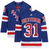 This authentic Adidas New York Rangers jersey has been personally hand-signed by Igor Shesterkin with the inscription "NHL Debut 1/7/20." It is officially licensed by the National Hockey League and comes with an individually numbered, tamper-evident hologram from Fanatics Authentic. To ensure authenticity, the hologram can be reviewed online. This process helps to ensure that the product purchased is authentic and eliminates any possibility of duplication or fraud.Made in the USAPersonally Autographed by Igor ShesterkinFanatics Authentic Presented by Mounted MemoriesIncludes tamper-evident hologram to ensure authenticityOfficially licensed This product is guaranteed authentic and includes a Fanatics Certificate of Authenticity and an accompanying tamper-evident Fanatics Hologram.
