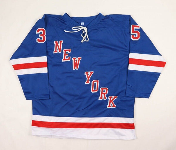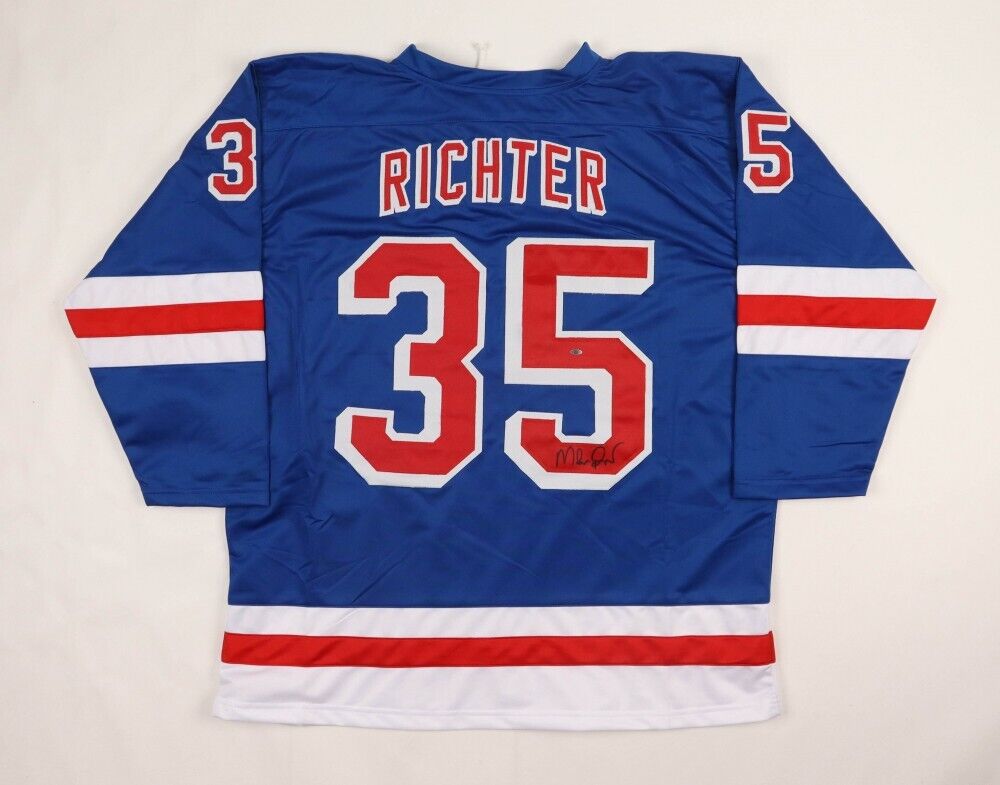 Custom on-ice style jersey. Everything is sewn on, size XL. Hand-signed by Mike Richter (HOF).The lot / autograph(s) includes an official OK Authentics hologram for authenticity purposes.Authentication: OK Authentics Hologram