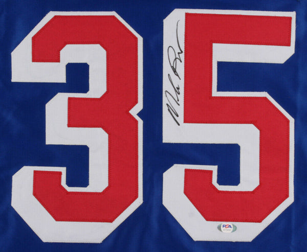 Custom on-ice style jersey. Everything sewn on, size XL. Hand-signed in black felt-tip pen by Mike Richter.The lot / autograph(s) includes an official PSA/DNA hologram and matching COA for authenticity purposes.Authentication: PSA COA