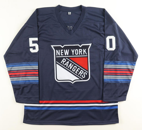 Custom on-ice style jersey with everything sewn on, size XL. Hand-signed by Will Cuylle (New York Rangers).The autograph includes an official James Spence Authentication (JSA) hologram and scannable QR Code card for authenticity purposes.Authentication: JSA Scannable QR Code cardCustom on-ice style jerseys are a more affordable option for autograph seekers. These jerseys do not have any brand name or tags and are made in the Philippines. They feature stitched on names and numbers and are made to look very similar to the on-field jerseys that the players wear. These custom jerseys are very commonly used in the memorabilia industry.