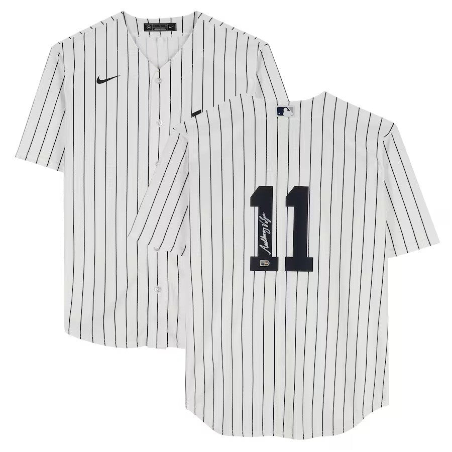 Featured is an Anthony Volpe signed New York Yankees Nike replica baseball jersey. This jersey has been hand signed by Volpe and comes with the Fanatics hologram and certificate of authenticity. Jersey size may vary. This jersey would make a great addition to any sports memorabilia collection.. SPECIFICATIONS Autographed By: Anthony Volpe Team: New York Yankees Sport: Baseball Authentication: Fanatics Authentic