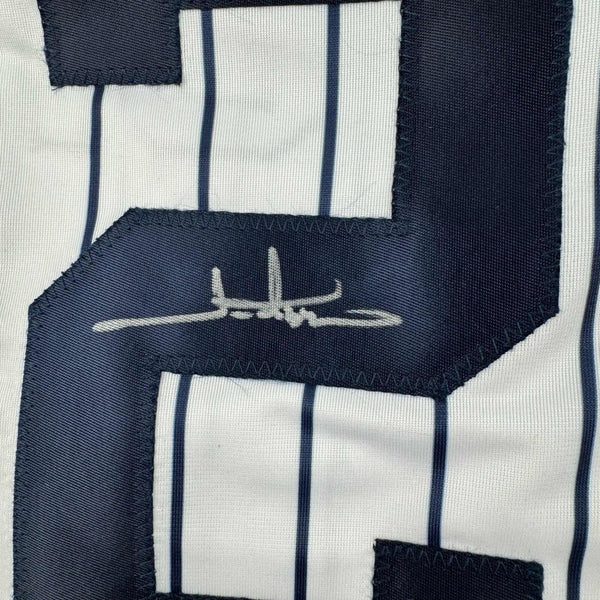 Autographed/Signed Jim Abbott New York Yankees White Pinstripe Jersey BAS Holo
