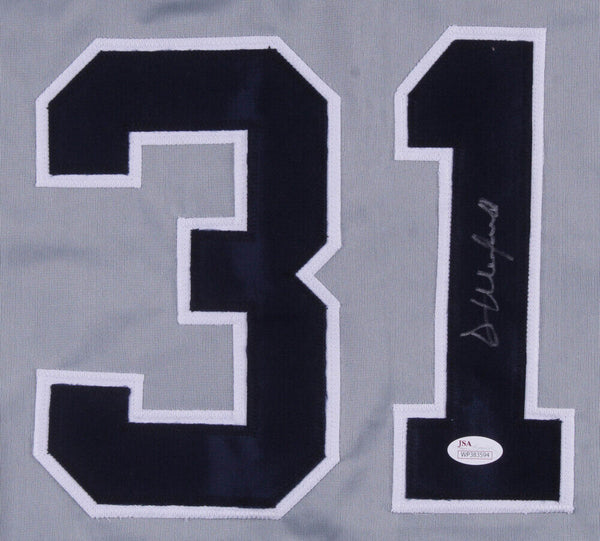 Custom on-field style jersey. Everything sewn on, size XL. Hand-signed in silver paint pen by Dave Winfield (HOF). Please note, Winfield's career stats are custom stitched onto the jersey under the reverse numbers. The lot / autograph(s) includes an official James Spence Authentication (JSA) hologram and matching COA for authenticity purposes. The signing of this item was witnessed by JSA.Authentication: JSA COA