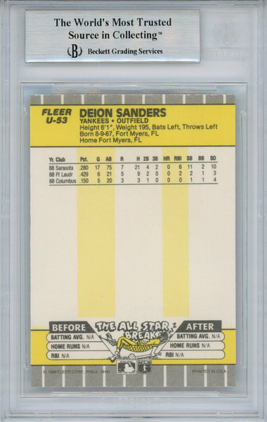 Deion Sanders Autographed/Signed 1989 Fleer Trading Card BAS Slab 32095 The number in the listing title is just an inventory sku for our records and is not the authentication number. This is a 1989 Fleer trading card that was personally autographed by Deion Sanders. This was professionally slabbed by Beckett Authentication Services (BAS) and includes a certificate of authenticity from Denver Autographs.