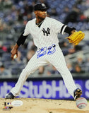 Domingo German Autographed New York Yankees 8x10 Photo Pitching PF- JSA W Auth This is a hand autographed 8x10 Photo File Photo of Domingo German of the New York Yankees. This item has a James Spence Witness Protection Authentication, which comes with a JSA numbered sticker and a matching JSA Certificate of Authenticity. You can view this item on the SpenceLOA website and it shows when and where the item was signed. It was signed either at a public autograph appearance or a private signing. This is a stock photo of the item. Although you may not receive this exact item, the item you receive is virtually identical and brand new in great shape.