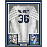 Framed Autographed/Signed Clarke Schmidt 35x39 New York Pinstripe Jersey BAS COA The item is professionally framed and matted with two 5x7 photos, measures 35x39 inches and is ready to be hung in your man cave! Photo and matting requests can be made.