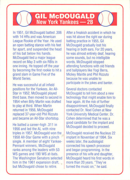 Gil McDougald Signed New York Yankees 4.5" x 5.5" Stat Advertisement Card 43312 The number in the listing title is just an inventory sku for our records and is not the authentication number. The item pictured is a stock photo unless otherwise noted. This is a for an autographed Gil McDougald promotional card.