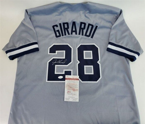 Custom on-field style jersey. Everything is sewn on, size XL. Hand-signed in silver paint pen by Joe Girardi. The autograph includes an official James Spence Authentication (JSA) hologram and matching COA for authenticity purposes. The signing of this item was witnessed by JSA.Authentication: JSA COA