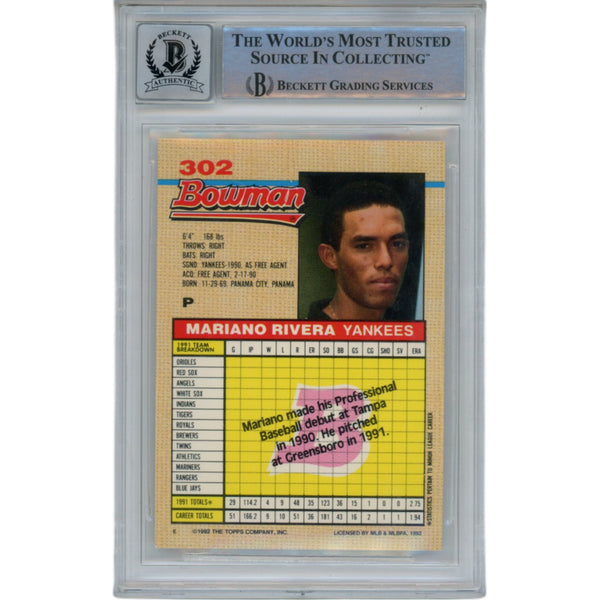 Mariano Rivera Autographed 1982 Bowman #302 10 Auto Slabbed Card Beckett 49352