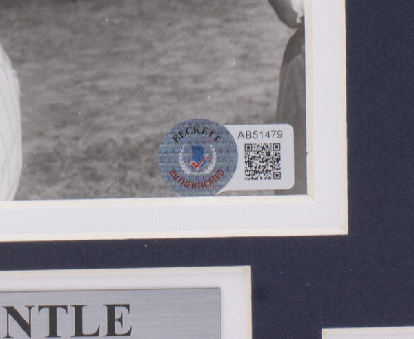 Featured is a Mickey Mantle and Joe DiMaggio signed framed 8x10 New York Yankees baseball photo. This photo was hand signed by Mickey Mantle and Joe DiMaggio and has been authenticated by Beckett authentication services. Included with the photo is a Beckett hologram and letter of authenticity. Professionally framed and matted. Measures approximately 11x14 inches in total size, ready for display. SPECIFICATIONS Autographed By: Mickey Mantle Team: New York Yankees Sport: Baseball Authentication: Beckett Grading Services