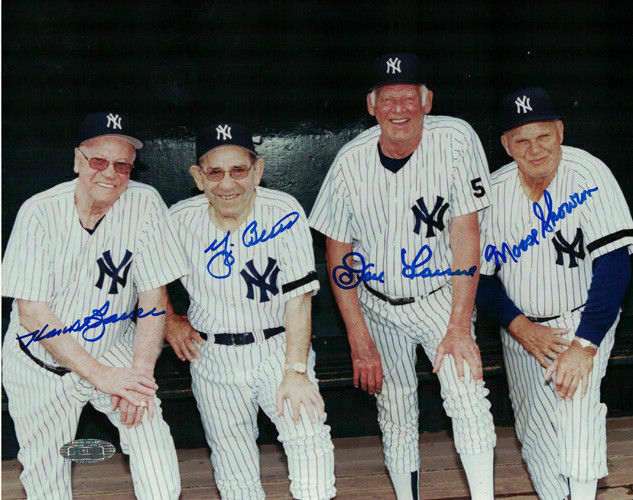 Yankees Legends Signed 8x10 Photo Yogi Berra Larsen Bauer Skowron Steiner 10343 This is an 8x10 photo that has been personally signed by All-Time Yankee Greats: Hank Bauer, Yogi Berra, Don Larsen, and Moose Skowron.This item includes a certificate of authenticity from Denver Autographs and Steiner Sports.