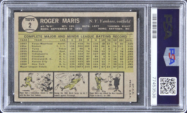 This is a 1961 Topps #2 Graded VG-EX-4 Card of Roger Maris of the New York Yankees. This item is 100% Authentic, it comes slabbed and authenticated by PSA. This item is not autographed. The authenticity can be verified on Professional Sports Authenticator website.