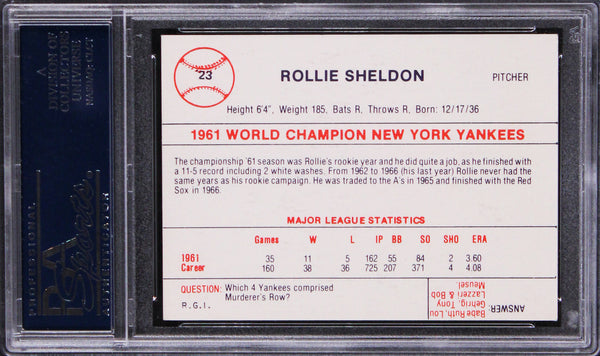 Yankees Rollie Sheldon Signed 1986 Renata Galasso '61 NYY #23 Card PSA/DNA Slab