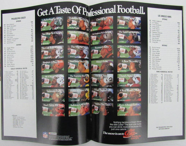 1989 GameDay AFC-NFC Playoffs Eagles vs. Rams Dec 31, 1989 Game Program. This program is in Excellent condition. Spine is tight. Front is in Good condition. Pages are intact. Staples good.