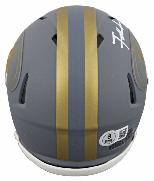 This Autographed w/ White Signature Alternate Slate Speed Mini Helmet W/ Uv Mirrored Back Acrylic Display Case has been Personally Signed by Frank Gore of the San Francisco 49ers. This item is 100% Authentic to include a hologram by Beckett Authentication Services. This item will come with an affixed Beckett Authentication Services (BAS) authentication sticker, which includes a scannable QR code to verify authenticity. Please note that Beckett no longer provides serial-numbered COA cards, and the attached BAS sticker will serve as the complete authentication for this item. This is a BAS Witnessed Protection Program item which means a Beckett Authentication Service representative was present when this item was being signed. We conducted an autograph signing with Frank Gore where multiples of the same item were signed. While the photographs are representative of this item, the size, placement and strength of the signature may vary. Each item is hand signed, therefore, each autograph is unique. This item can be verified through BAS Witnessed.